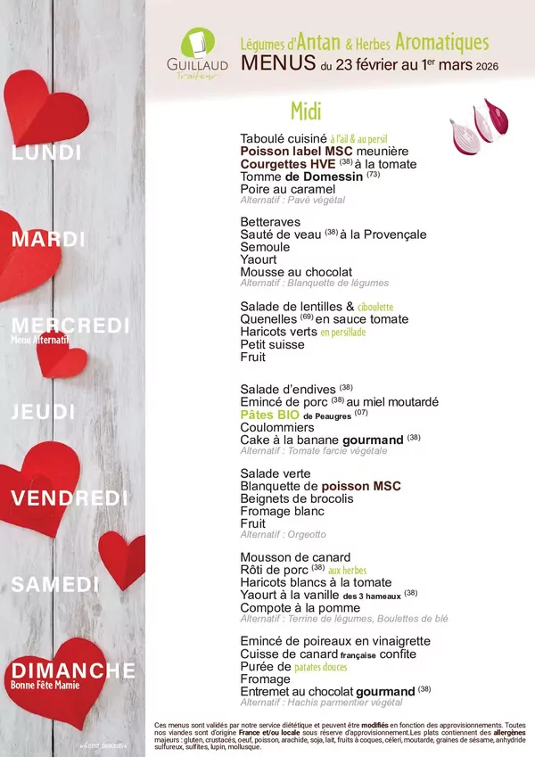 • Il est possible d’avoir des invités occasionnels sous réserve de respecter les délais de commandes. Le prix facturé est un montant fixé annuellement par le Conseil d’Administration du C.C.A.S.
